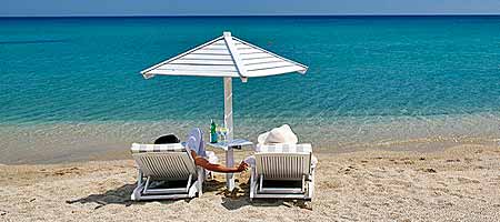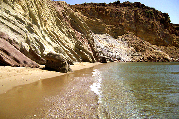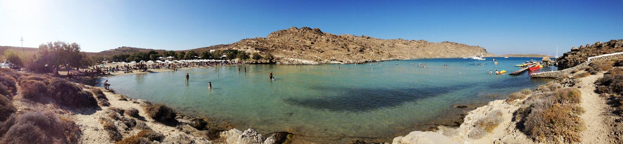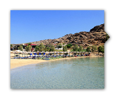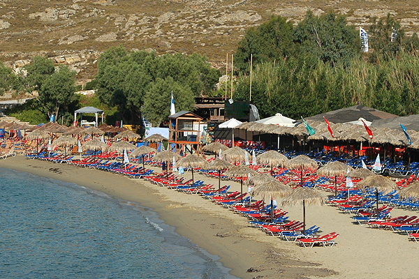 Lolantonis beach was named after the famous taverna located at the edge of this small sandy stretch of land. The beach is pristine and golden, with clean and transparent water, and numerous salt cedar trees providing the necessary shade from one end to the other.