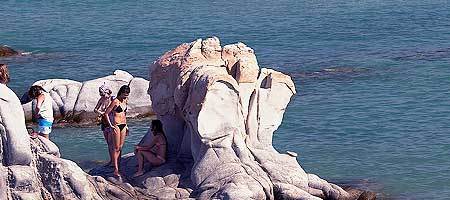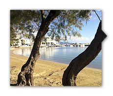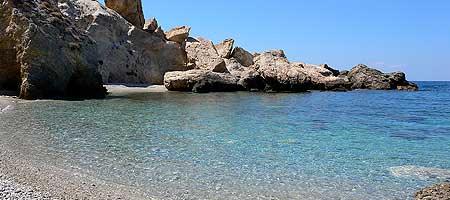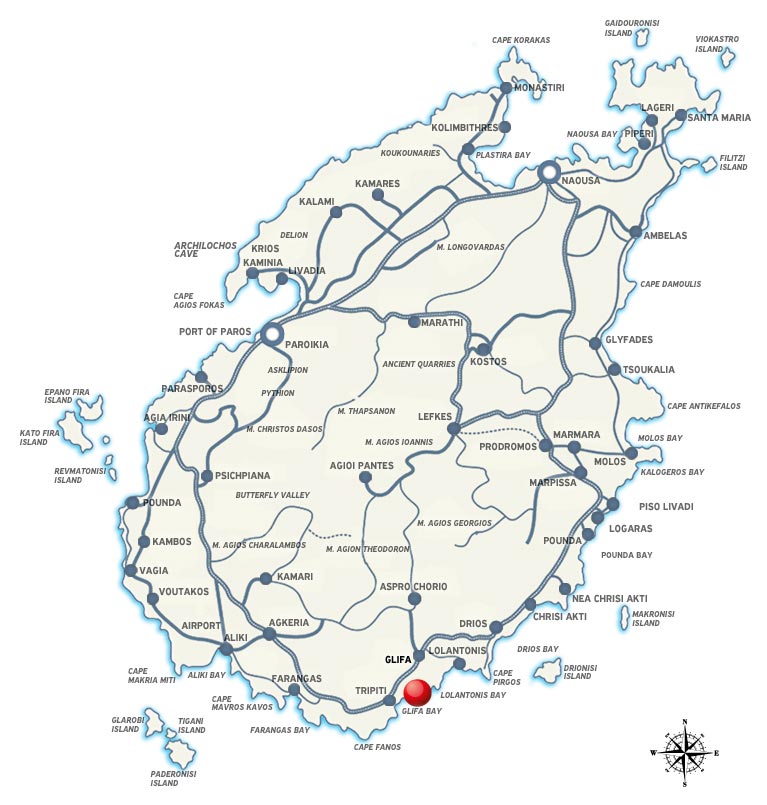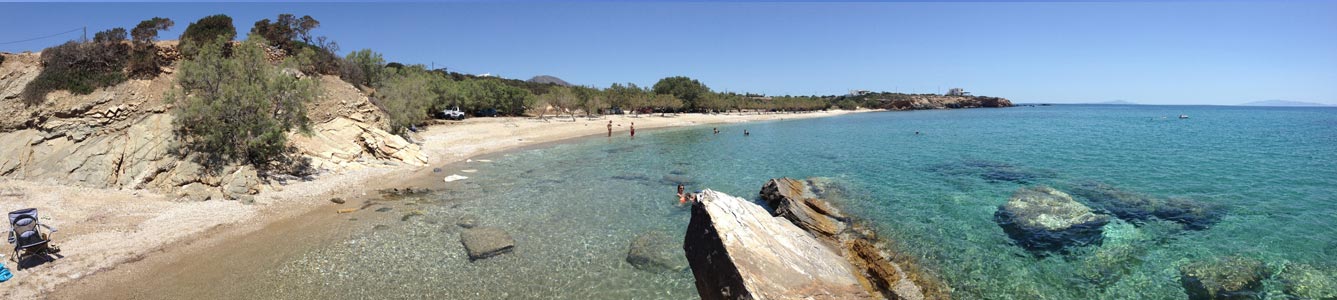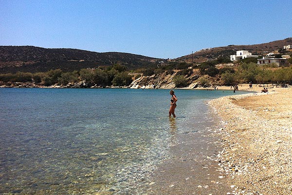 Glyfades beach is located about 15-16 kms east of Paroikia and nearly 5 kms south of Naoussa. It is a large sandy beach with clear blue water, hidden behind the vegetation surrounding it. Situated between Molos and Ambelas, it is one of the small treasures of Paros. Just because mass visitors are not aware of its existence, this place has preserved its tranquillity and beauty. There are no lodging facilities, as it is far from the main road and can be reached only through dirt roads, the visitor is however amply compensated with his eyes resting on a superb combination of green and blue. Glyfades is also a windsurfer's paradise, but if one just wants to enjoy swimming they will have to bring along supplies as there are no tourist facilities on the beach.