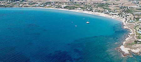 An extended sandy beach, about 5 kms north of Paroikia, close to Agios Fokas cape, at the entrance to Paroikia bay, the natural extension of Martselo beach. Next to it, at the Agios Fokas cape there is the Archilochus cave, a big hole on the practically vertical shore. According to legend, it is the spot where the great poet of antiquity retreated in order to meditate and get his inspiration (7th century BC). The cave is accessible by small boat from the port of Paroikia or by land by private means of transportation.