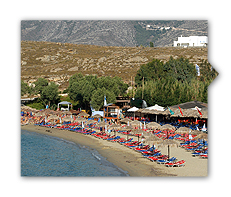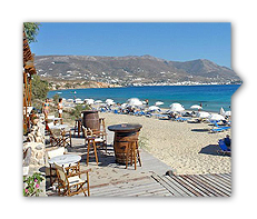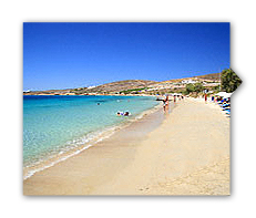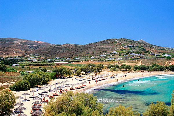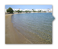 Krios beach is located in the northern side of the bay of Paroikia, 2 kms from the center of the town. It is a long beach with pure white sand and transparent blue water. It owes its popularity not only to the fact that it is so close to the town, but also to its charm. It is well organized and you can find bars almost licked by the waves to quench your thirst and hunger with refreshments and light meals.