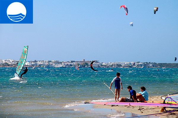 The beautiful sandy Golden Beach is more than 700 m. long and is visited daily by thousands of visitors. It is one of the most attractive and longest beaches of Paros, about 25 kms southeast of Paroikia. Golden Beach is considered one of the most important destinations for windsurfing and water sports enthusiasts, not only in Greece itself, but in the whole of the Mediterranean. The beach is well organized, it boasts the Blue Flag award, and its infrastructure is superb with modern hotels, rooms for rent, surf clubs (rental and storing of pleasure craft, rescue boats, schools for both beginners and advanced surfers), restaurants, seaside tavernas and bars.